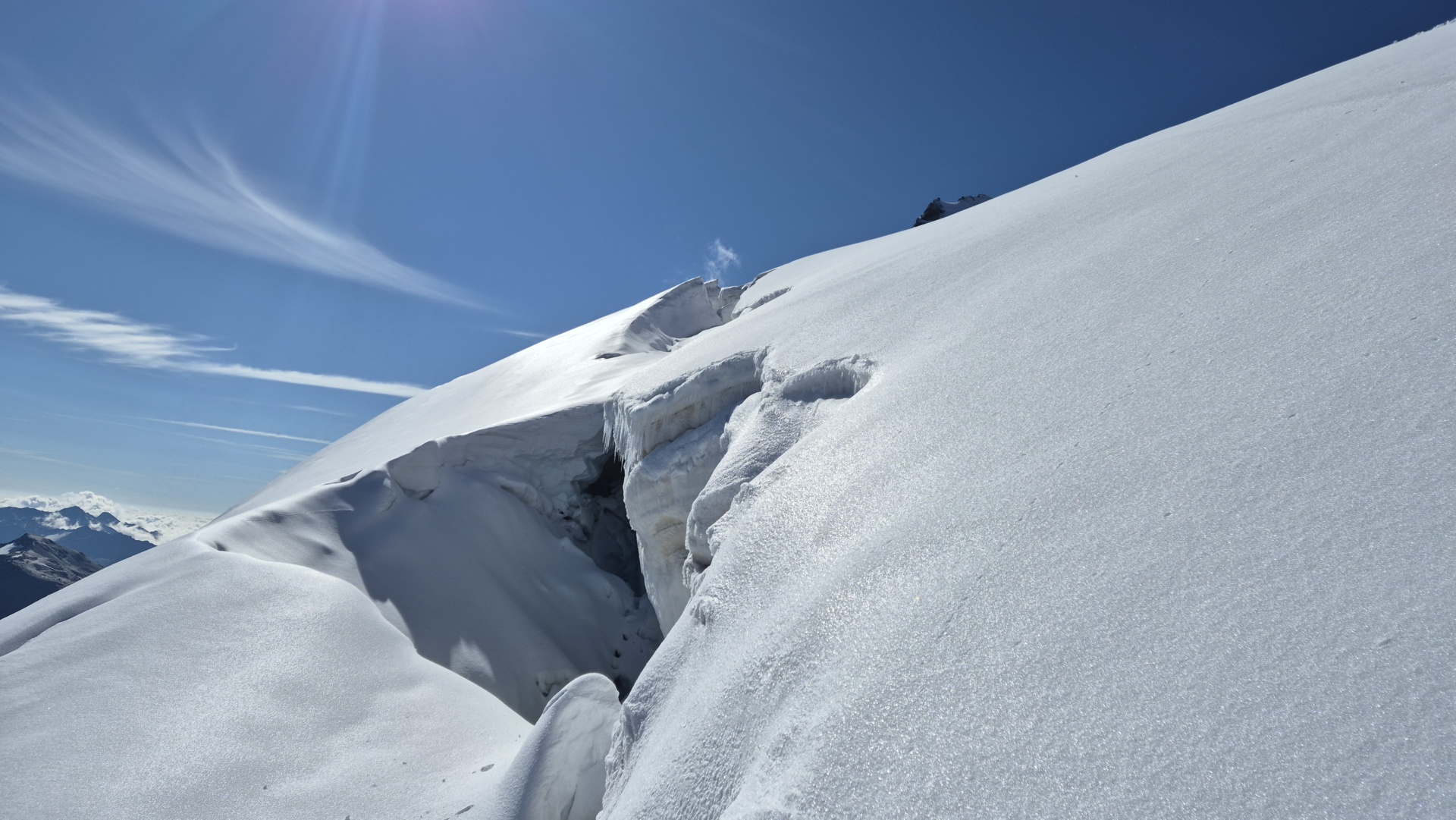 Der Hintergrat ist ein wunderschöner Weg auf den Ortler: eine ausgeklügelte Linie führt über Felsaufschwünge und Schneegrate auf seinen höchsten Punkt. Der Anstieg ist nie sehr schwierig, aber dennoch erfordert die Schlüsselstelle, ein glattes 3 m Wändchen im Schwierigkeits grad IV-, etwas Kraft im Oberarm. Aber keine Angst, die Stelle ist mit einer Kette entschärft und zur Not gibt auch der kräftige Zug des Bergführers Hilfe. Am restlichen Grat -die Bilder sprechen für sich- genießt man das Höhersteigen, umgeben von einem atemberaubenden Panorama.