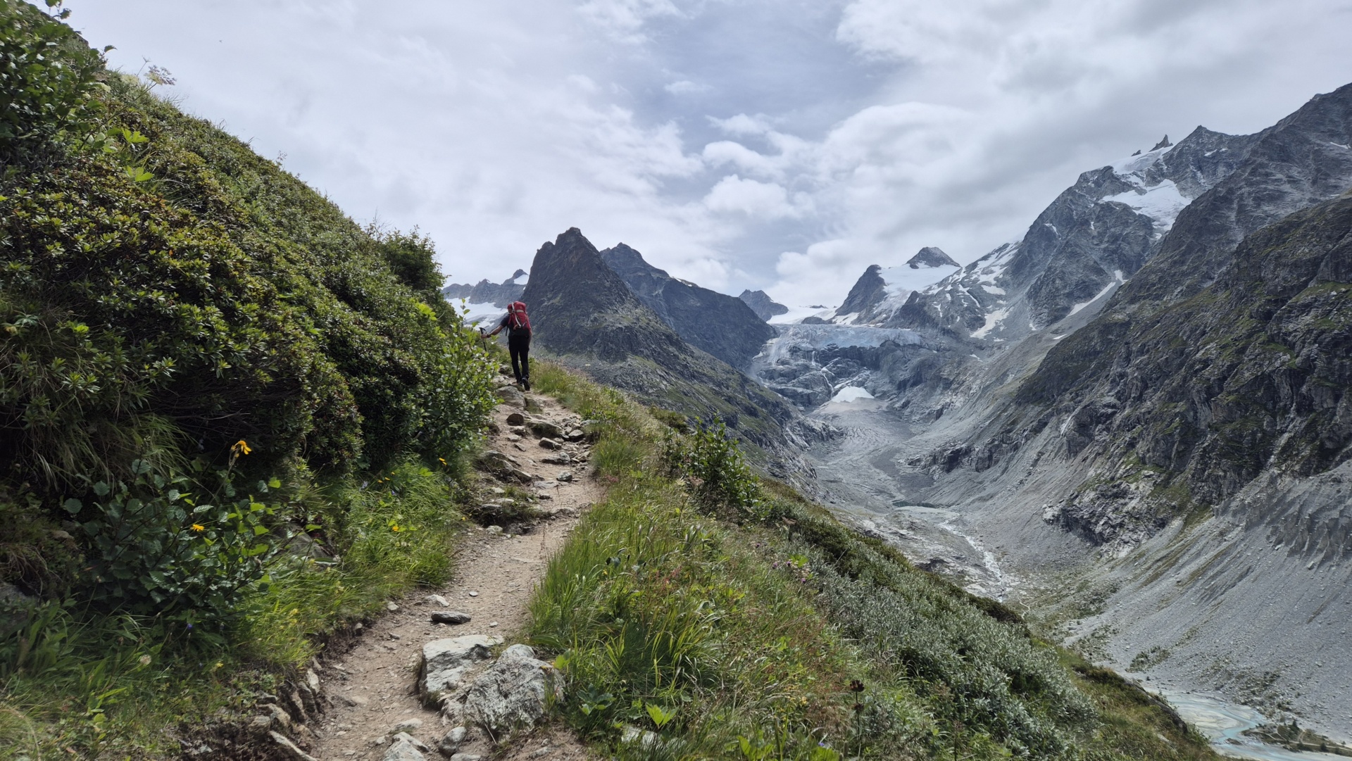 Die Dent Blanche dominiert den zentralen Bereich der Walliser Alpen, ein mächtiges Felsenhorn, das vor allem beim Blick von Westen sofort ins Auge sticht. Wir besteigen den Berg von seiner West- und Südseite, der Ausgangspunkt ist Ferpècle im Val d‘ Herens, welches bei Sion in das Rhonetal mündet. Der lange Hüttenzustieg zur Cabane de la Dent Blanche (4 bis 5 Stunden) wird mit dem relativ kurzen Gipfelanstieg über den Wandfluegrat ausgeglichen.